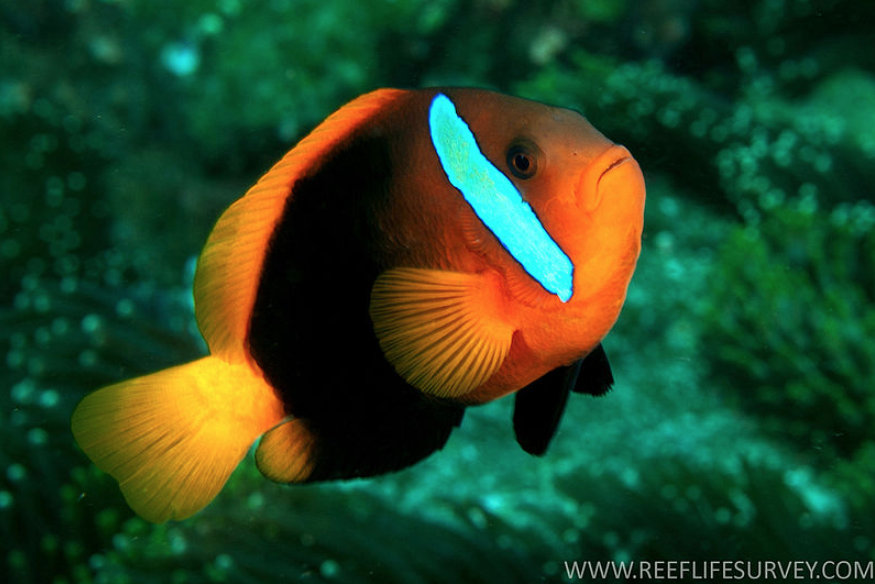 دلقک ماهی 0، 1، 2 یا سه نوار سفید عمودی دارد. این ملانوپوس آمفیپریون فقط یکی دارد.
