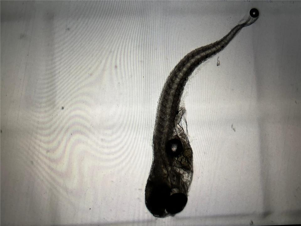 والدین بین 50 تا 200 تخم گذاشتند که در تاریخ 23 اکتبر 2024 هچ شدند و نرخ هچ 90٪ داشتند. لاروهای تازه هچ شده کوچک بودند و تنها 2 میلیمتر طول داشتند، که توسعه اولیه آنها را به خصوص چالشبرانگیز میکرد. برای بهینهسازی بقا، تخمها روی اسکلت مرده مرجان آکروپورا قرار داده شدند و قبل از هچ به دقت برداشته شده و به یک تشت گرد سیاه 64 لیتری برای پرورش کنترلشده منتقل شدند. لاروها در دمای ثابت 26 درجه سانتیگراد و تحت چرخه نوری 18:6 (روشنایی: تاریکی) پرورش داده شدند.
